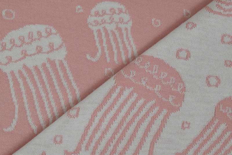 リバーシブルジャガードニット生地 ジェリーフィッシュ柄            色:コーラルピンク/アイボリー