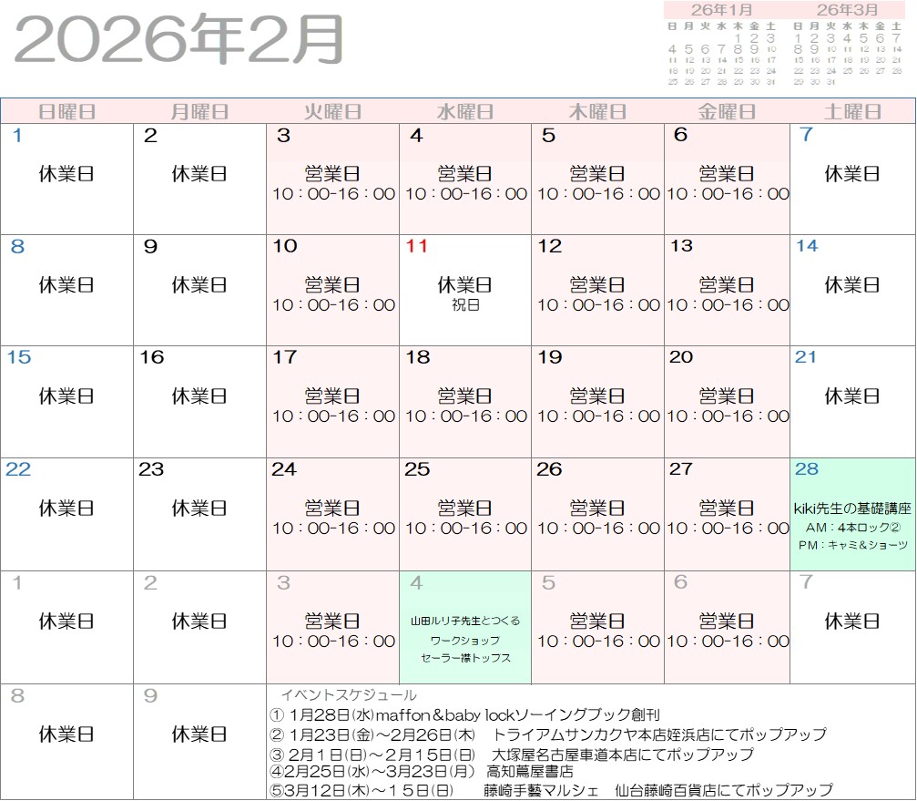 2月28日(土) カバーロックミシン基礎講座 残1席