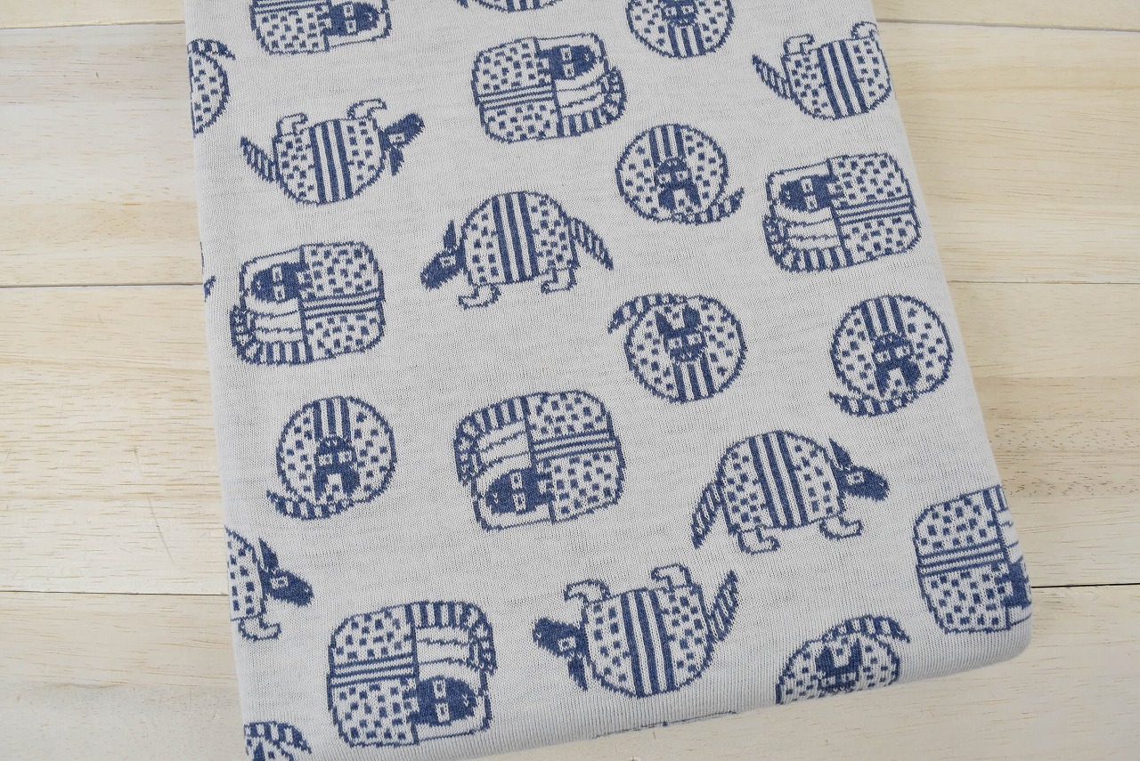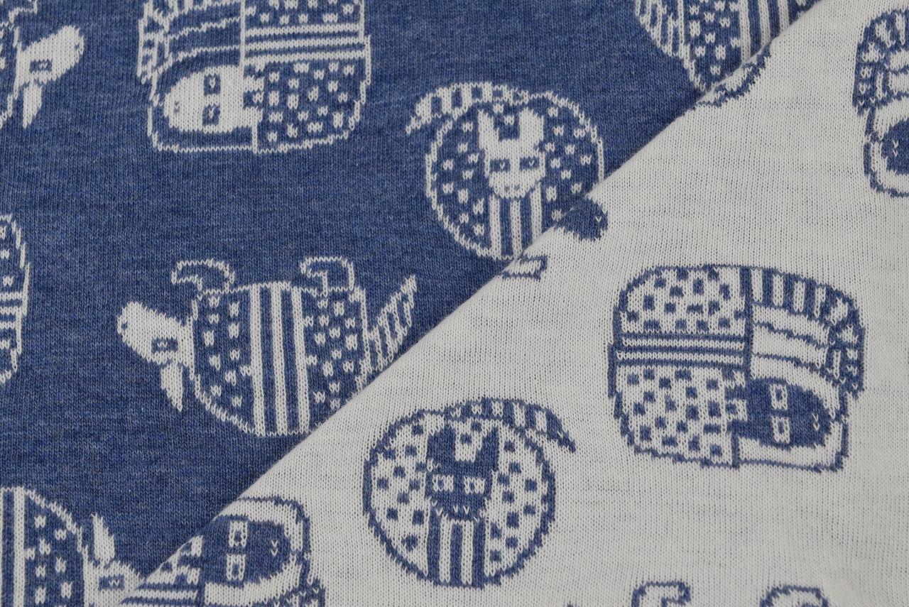 リバーシブルジャガードニット生地 アルマジロッ柄                色:杢ブルー/アイボリー