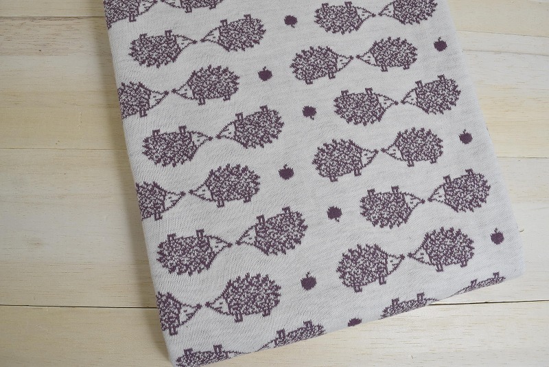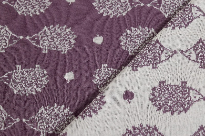 リバーシブルジャガードニット生地 ハリネズミ柄                色:モーヴ/アイボリー