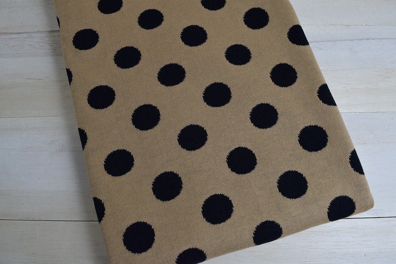 リバーシブルジャガードニット生地 ファインドット柄(1mカット生地)     色:黒/くるみ
