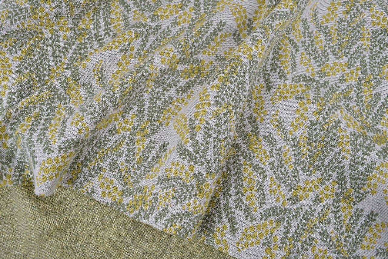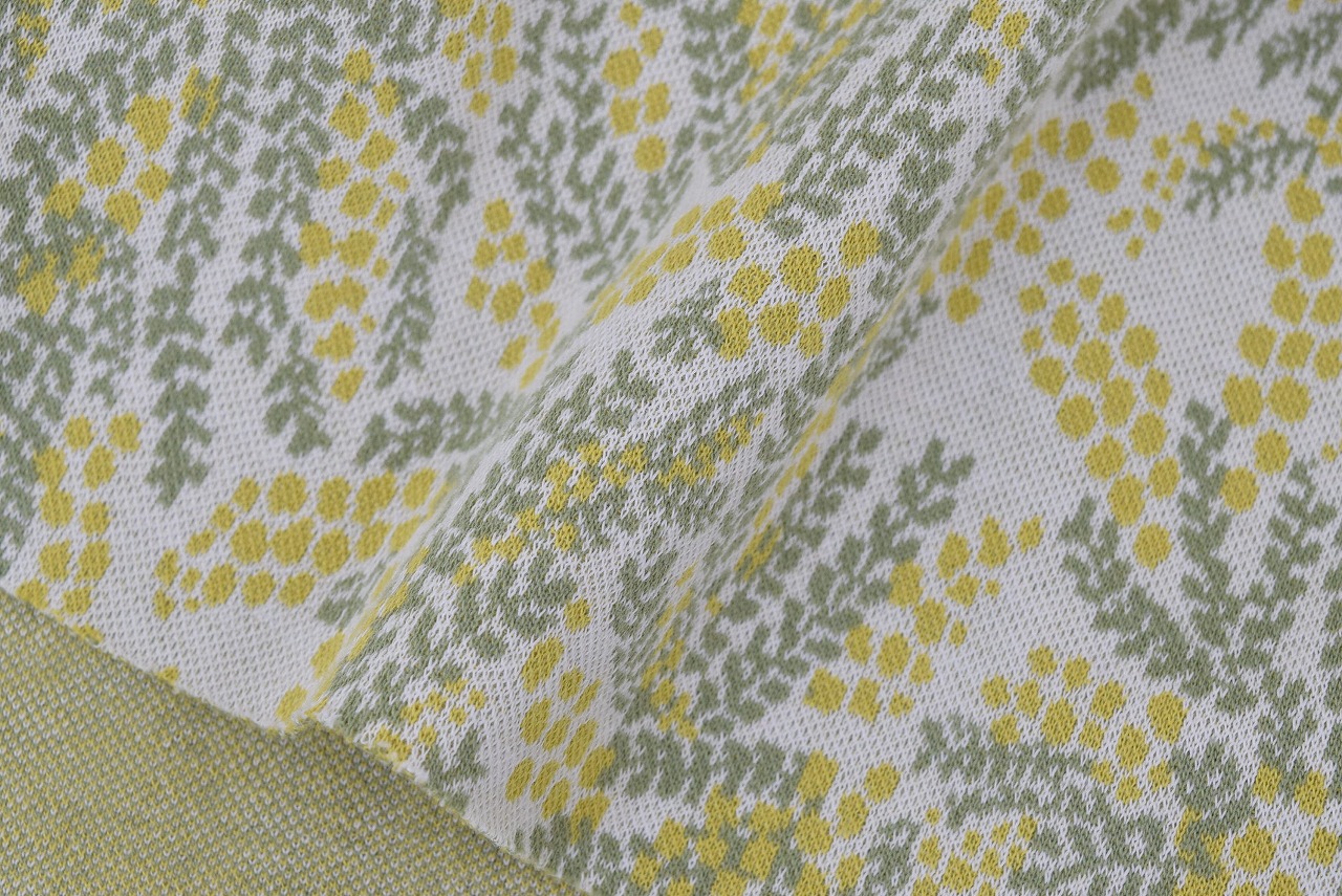 3色ジャガードニット生地 ミモザ柄            色:アイボリー/グラスグリーン/ミモザ