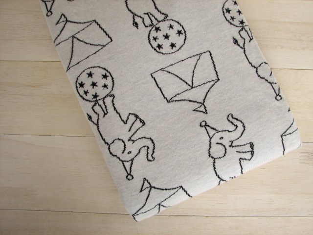 リバーシブルジャガードニット生地 サーカスエレファント柄     色:黒/アイボリー
