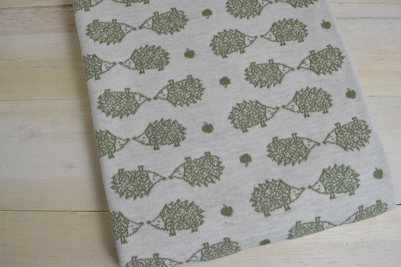 リバーシブルジャガードニット生地 ハリネズミ柄                色:グラスグリーン/アイボリー
