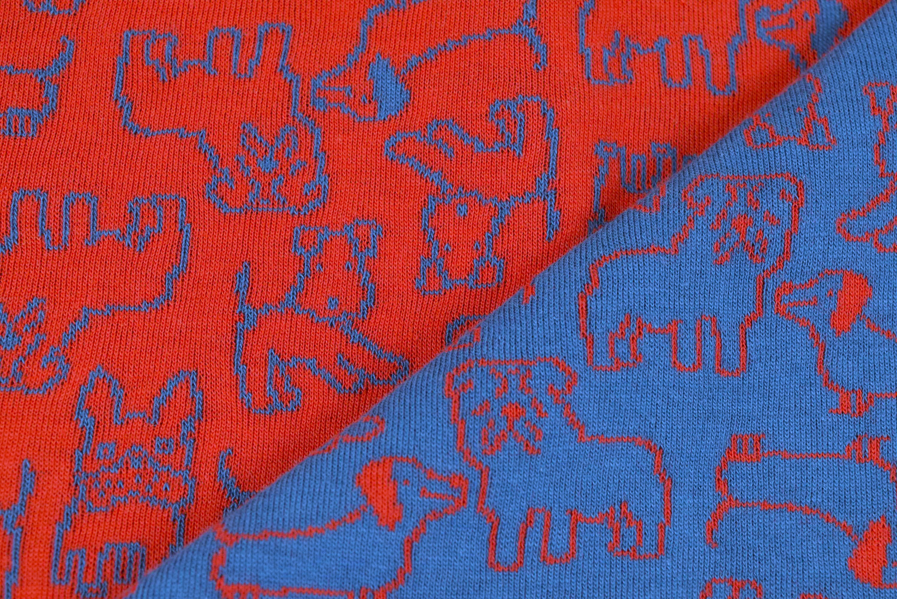 リバーシブルジャガードニット生地 チャムチャム柄                 色:レッド/ジェイブルー