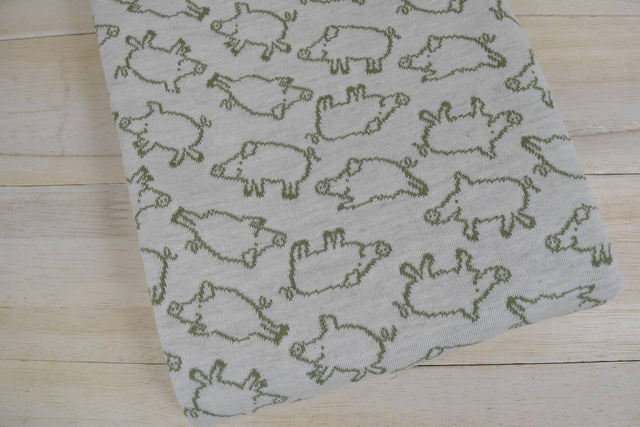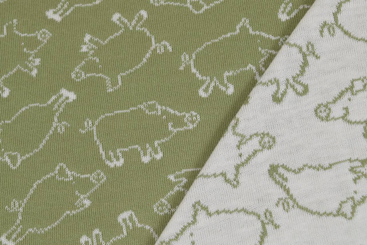 リバーシブルジャガードニット生地 ピグレット柄         色:グラスグリーン/アイボリー