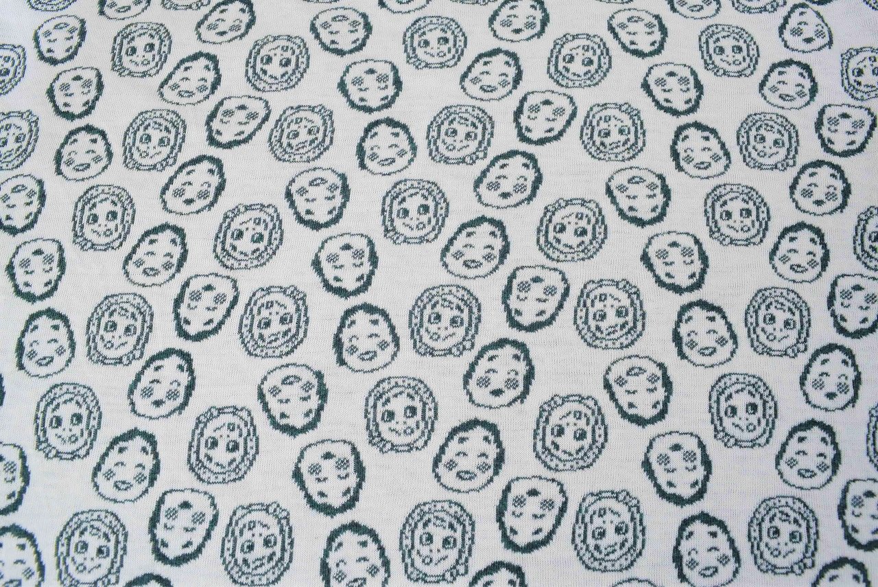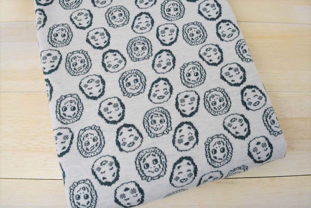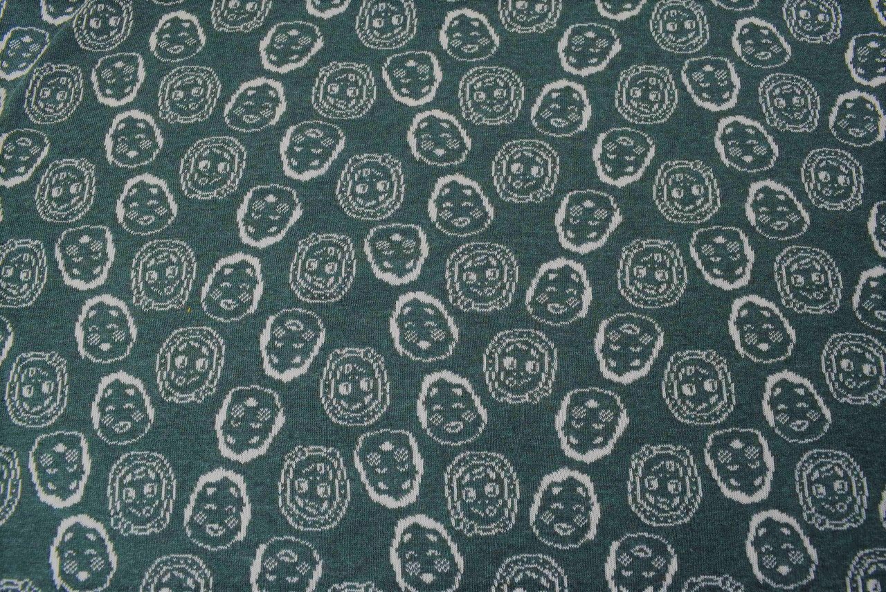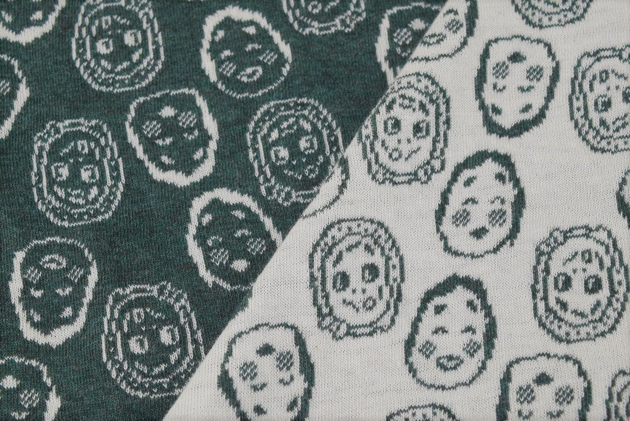 リバーシブルジャガードニット生地 ボーイズ&ガールズ柄       色:杢グリーン/アイボリー
