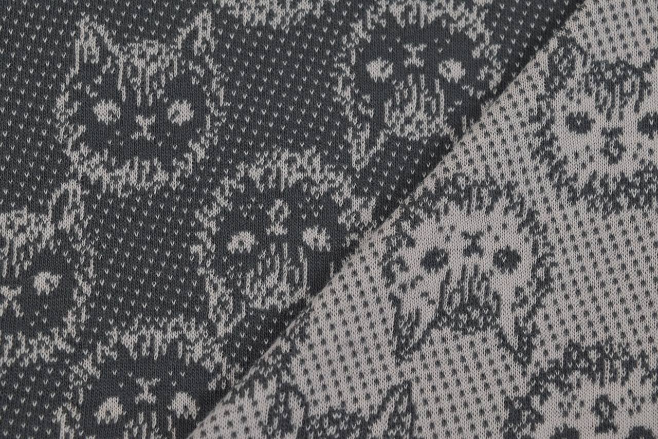 リバーシブルジャガードニット生地 ミミ柄                色:エボニー/フレンチピンク