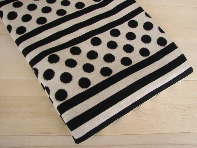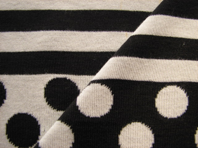 リバーシブルジャガードニット生地 ドット&ボーダー柄        色:黒/アイボリー