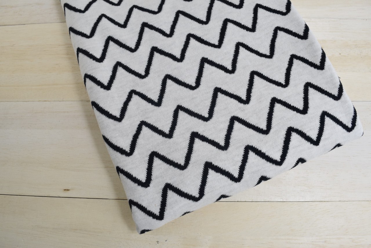 リバーシブルジャガードニット生地 ジグザグステッチ柄         色:黒/アイボリー