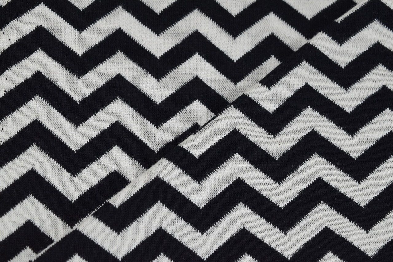 リバーシブルジャガードニット生地 ヘリンボン柄           色:黒/アイボリー