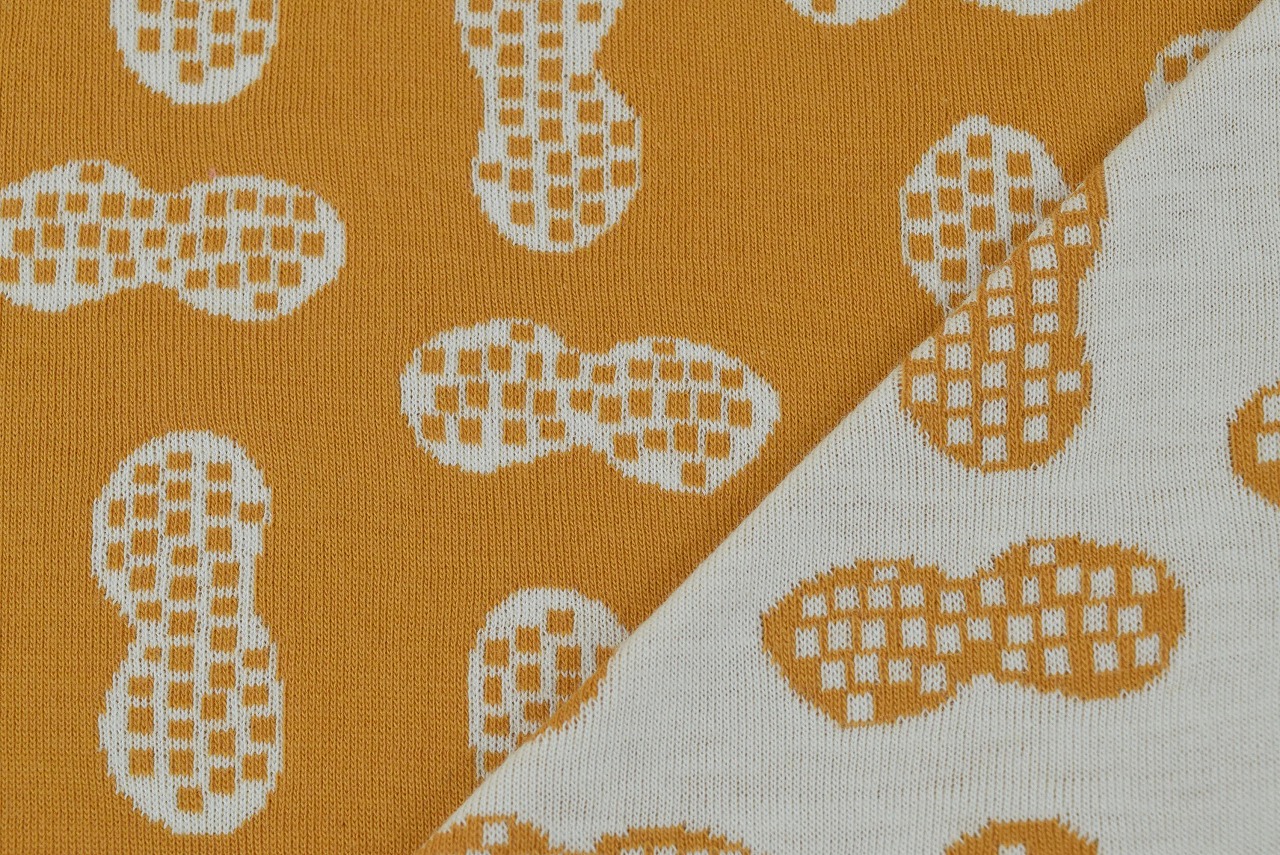 リバーシブルジャガードニット生地 ピーナッツ柄         色:コニャック/アイボリー