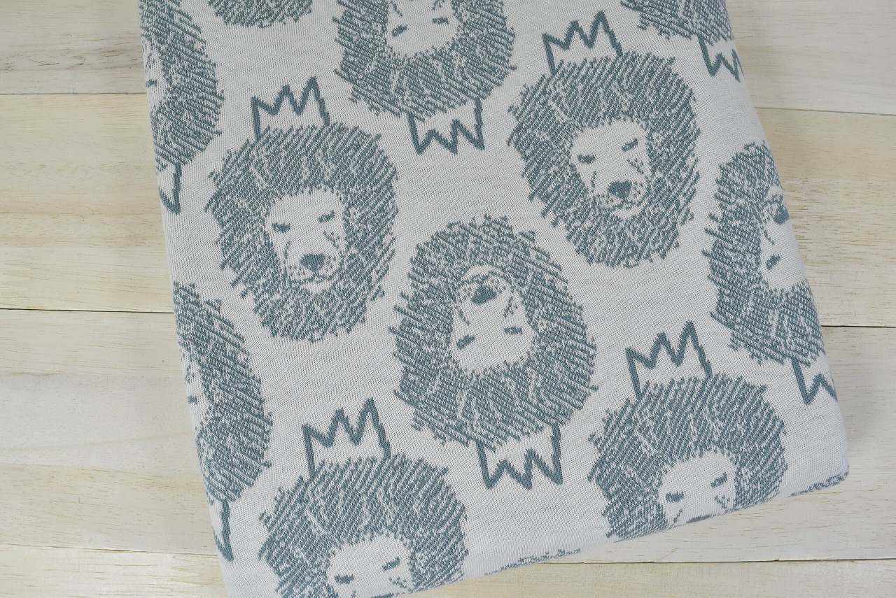 リバーシブルジャガードニット生地 ライオン柄             色:アロエ/アイボリー