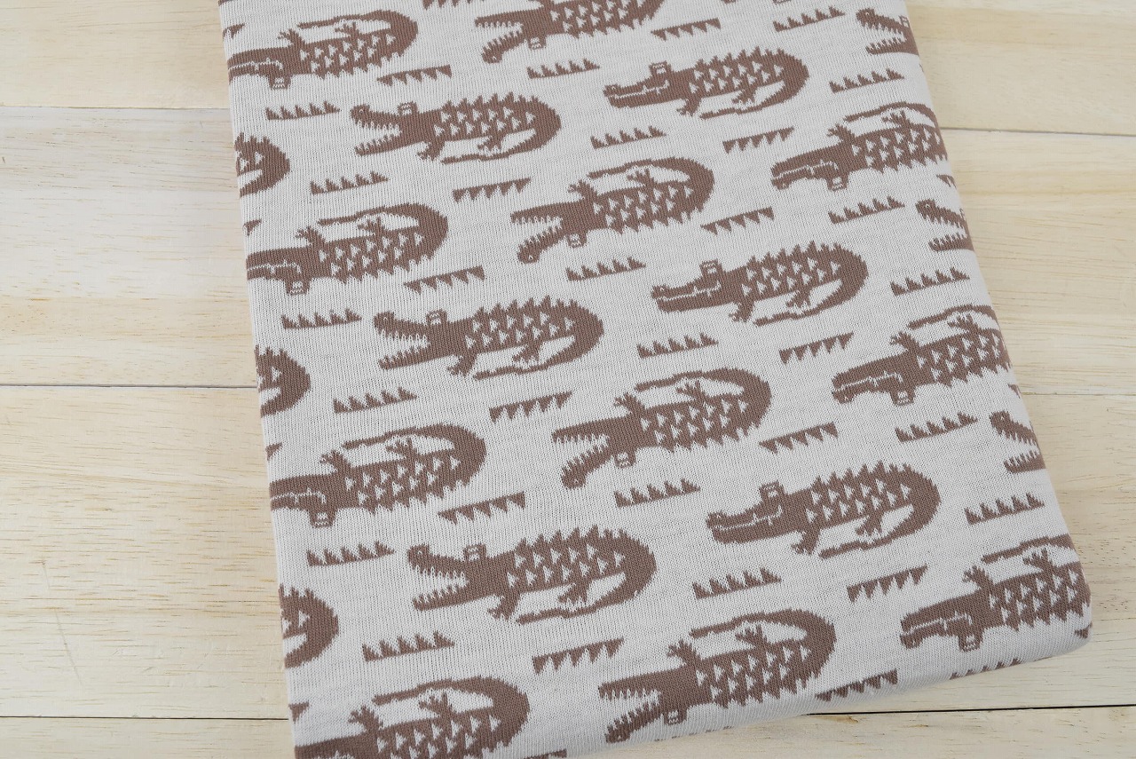 リバーシブルジャガードニット生地 ワニさん柄             色:ココア/アイボリー