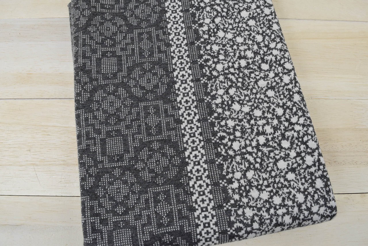リバーシブルジャガードニット生地 リドー柄              色:ダーク杢グレー/アイボリー