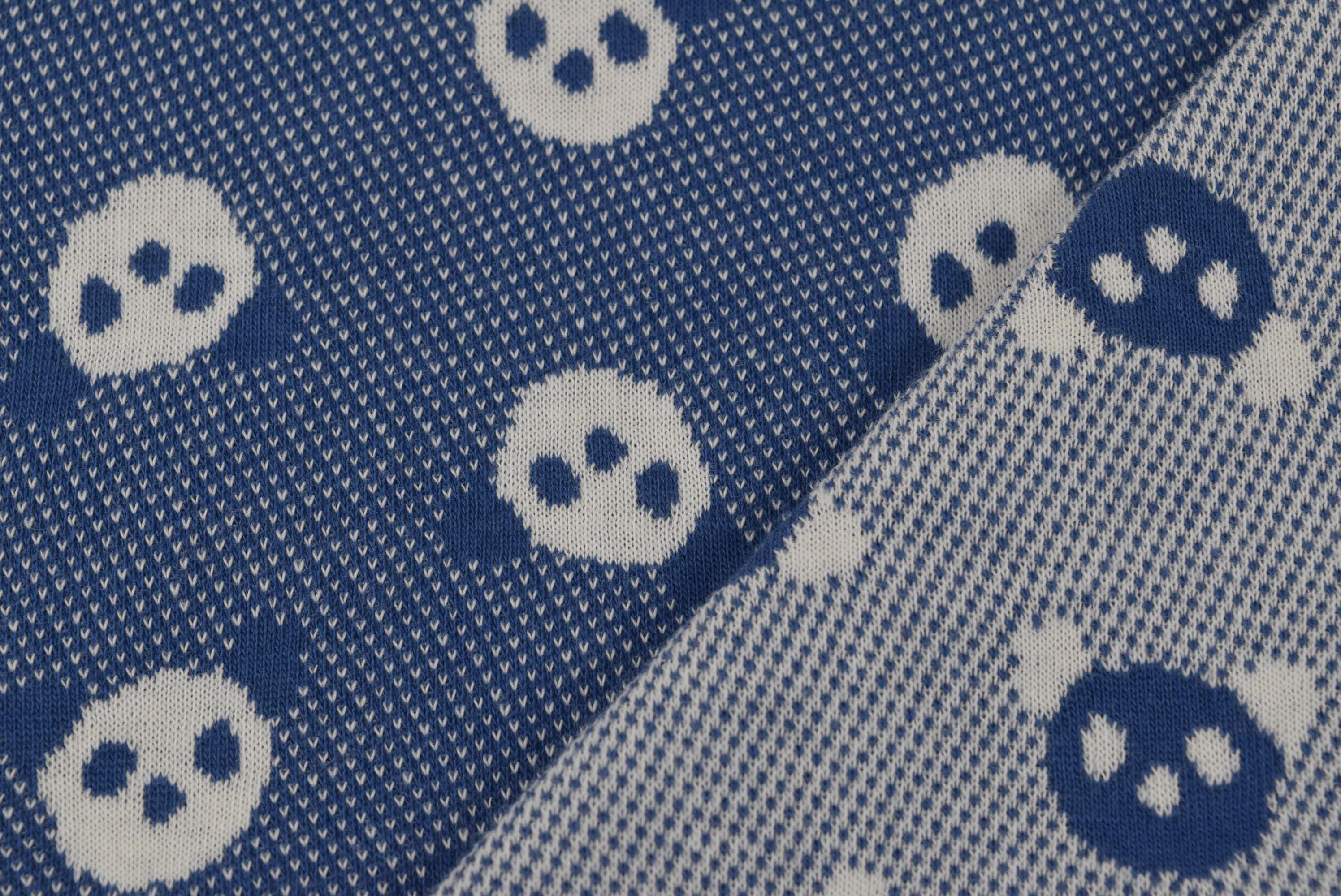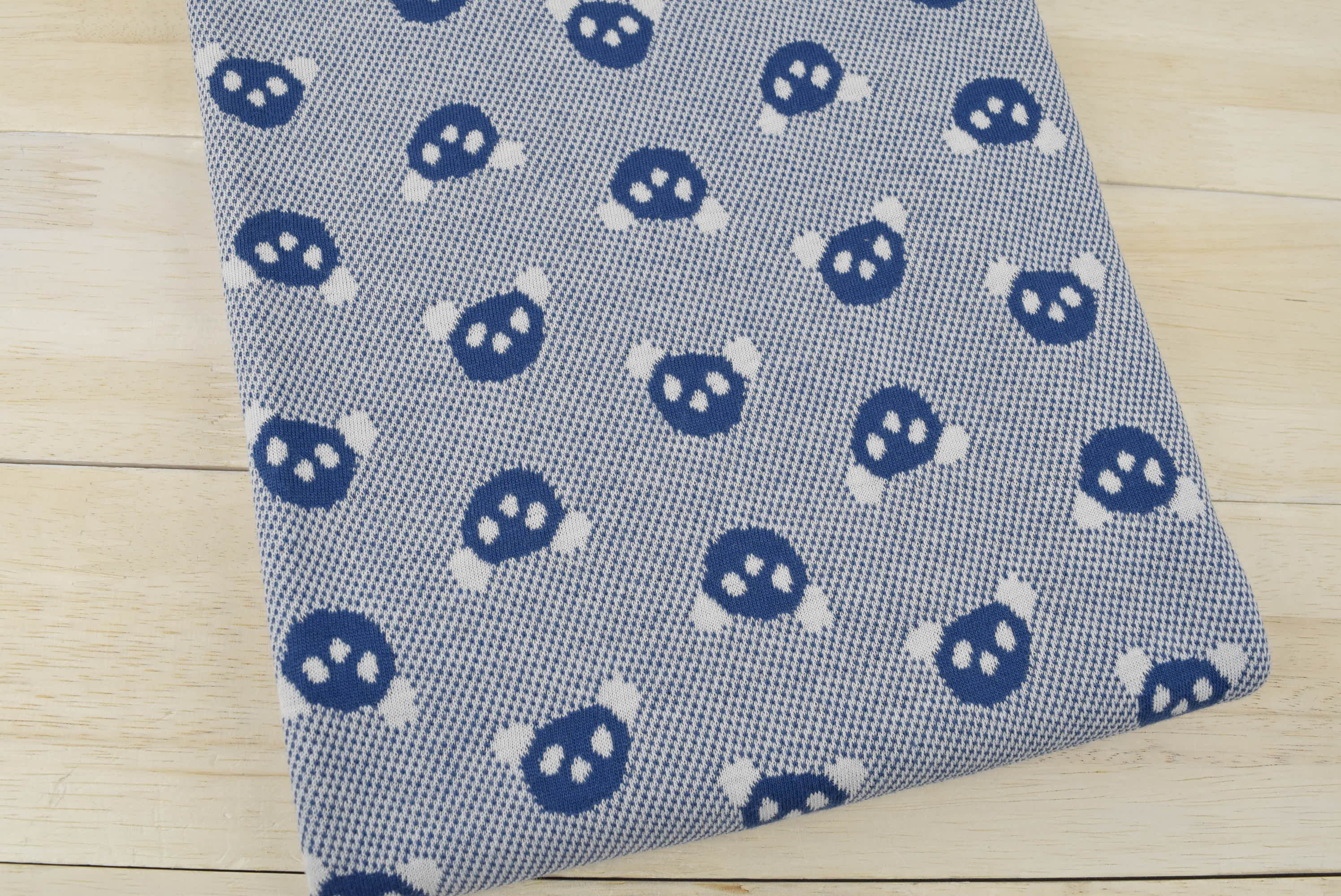 リバーシブルジャガードニット生地 キャンディパンダ柄            色:ジェイブルー/アイボリー