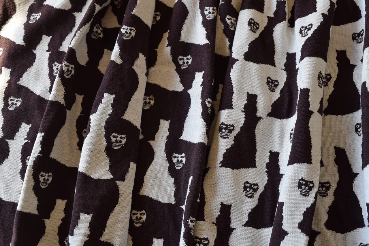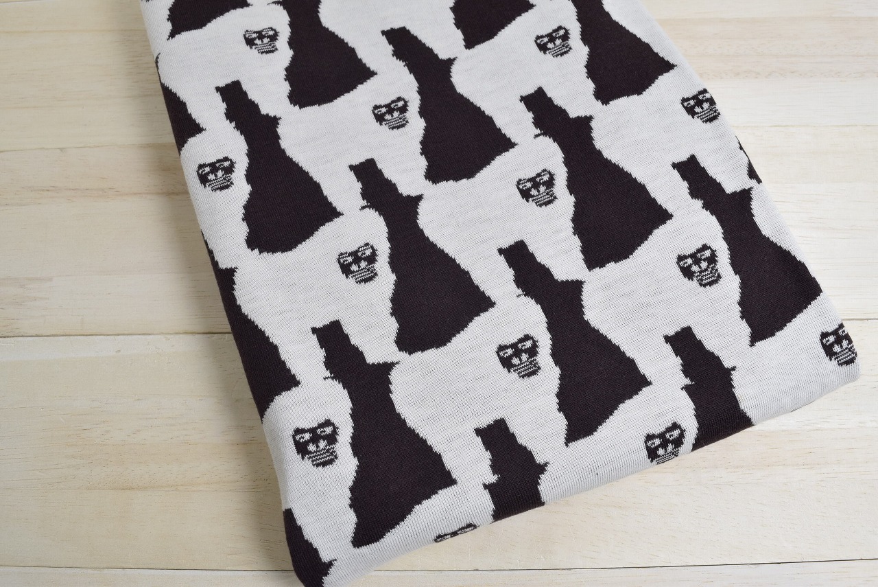 リバーシブルジャガードニット生地 ゴリラ柄                   色:ダークブラウン/アイボリー