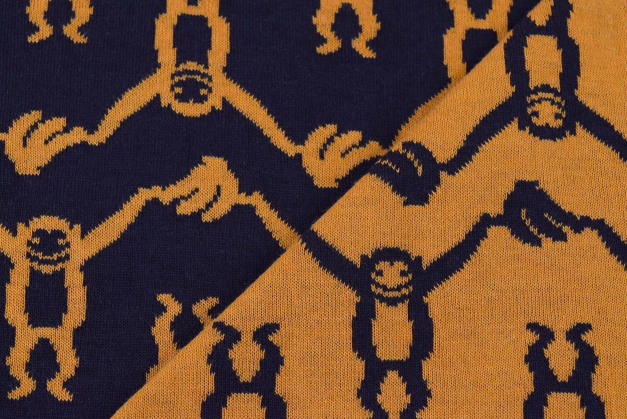 リバーシブルジャガードニット生地 モンキーバナナ柄 (1m+品番マーク入り)                   色:チョコレート/チェダー