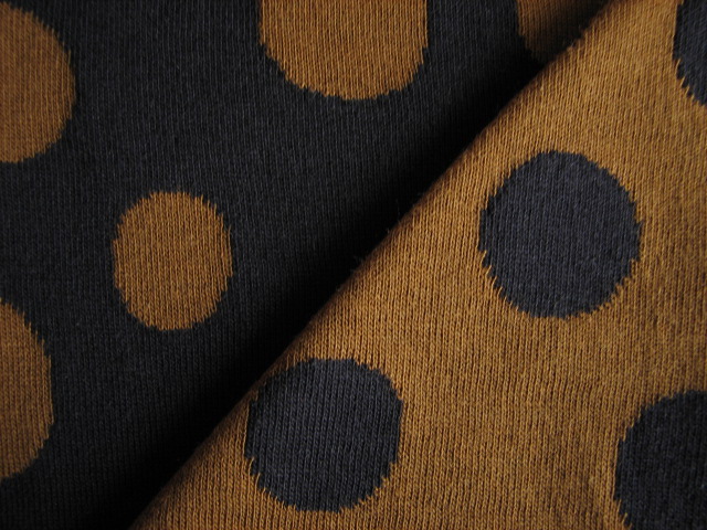 リバーシブルジャガードニット生地 バブルドット柄          色:ネイビー/シナモン
