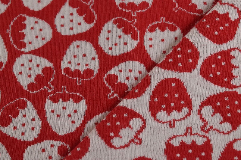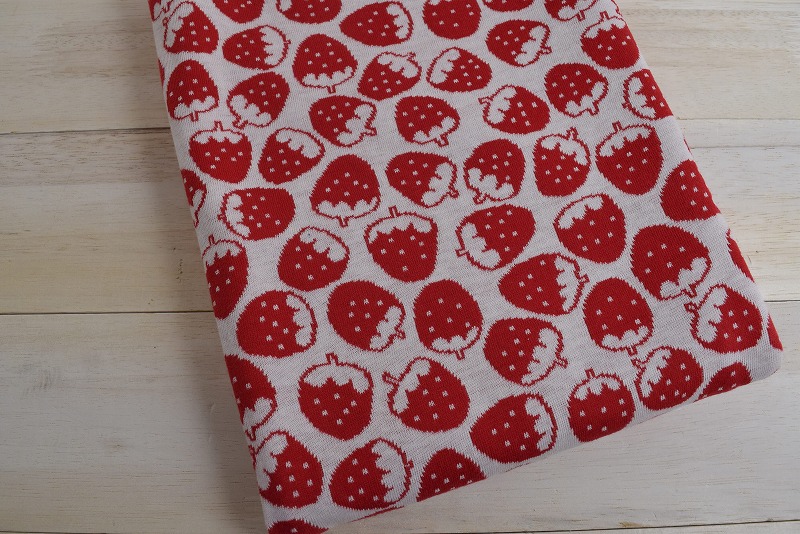 リバーシブルジャガードニット生地 いちご柄                色:レッド/アイボリー