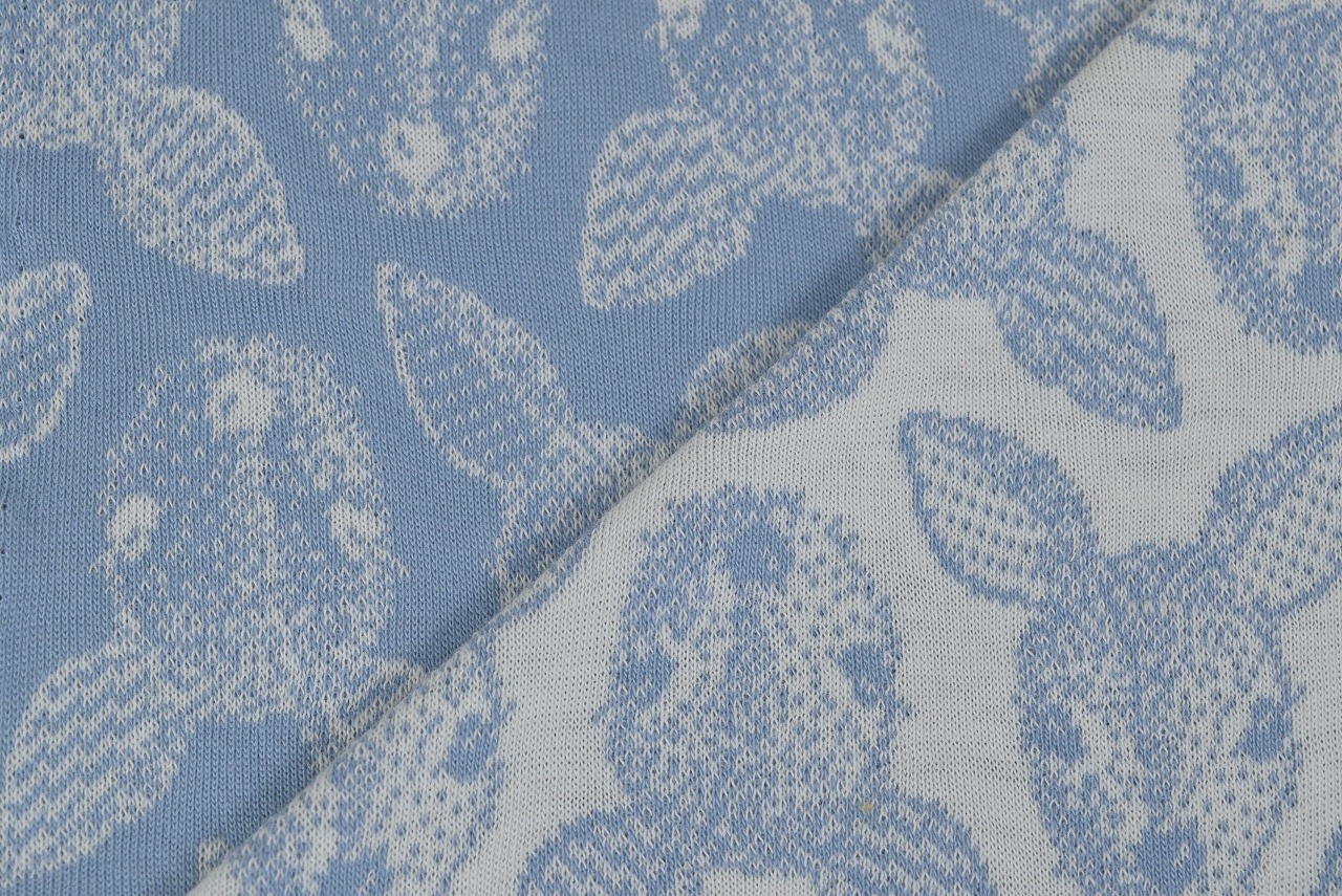 リバーシブルジャガードニット生地 バンビドール柄         色:フラスコ/アイボリー