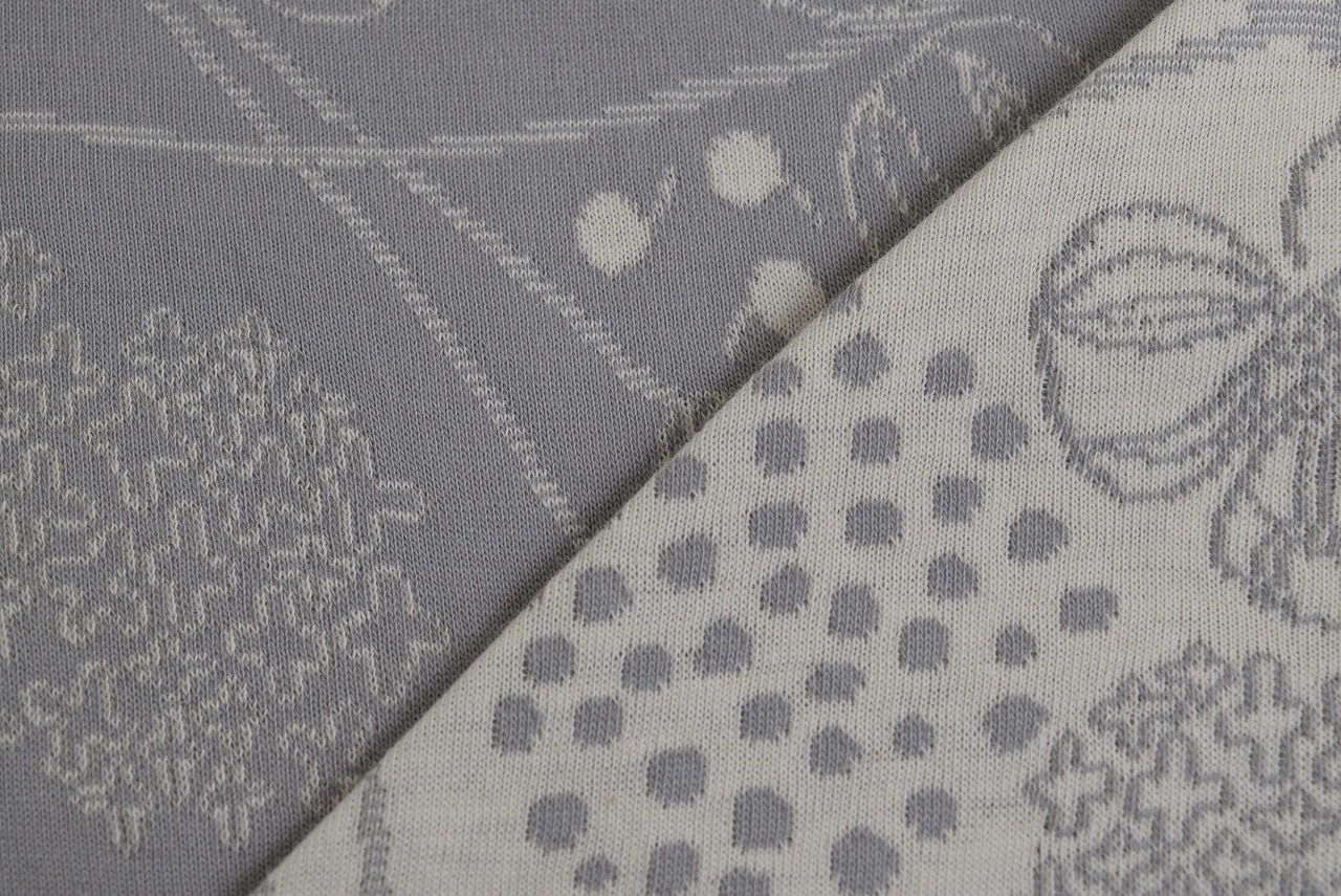リバーシブルジャガードニット生地 フロリスト柄         色:アッシュ/アイボリー