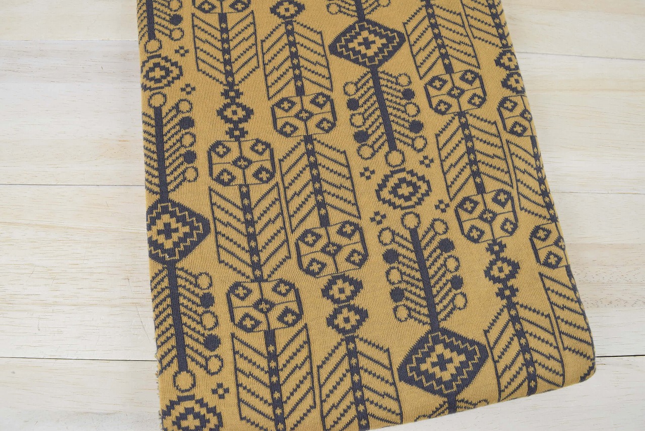 リバーシブルジャガードニット生地 バハル柄              色:チャコール/マスタード