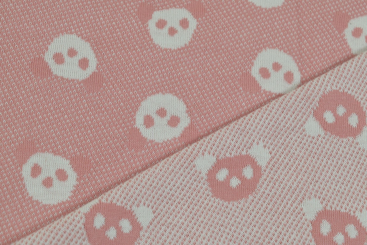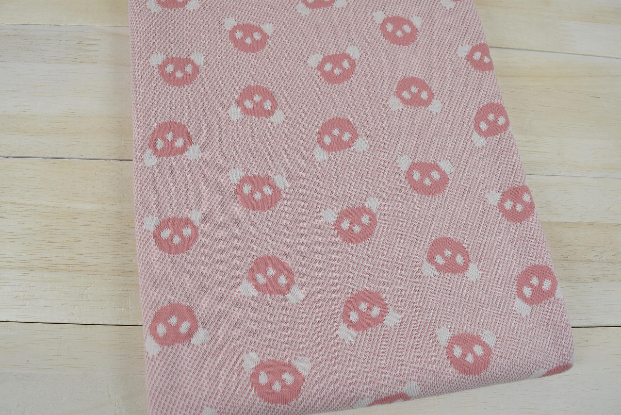 リバーシブルジャガードニット生地 キャンディパンダ柄            色:ワイルドローズ/アイボリー