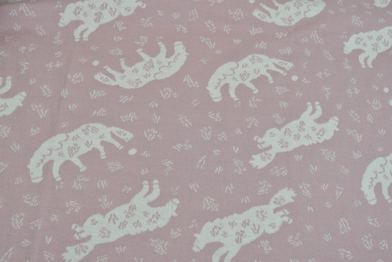リバーシブルジャガードニット生地 耕す馬のひるやすみ柄           色:フレンチローズ/アイボリー