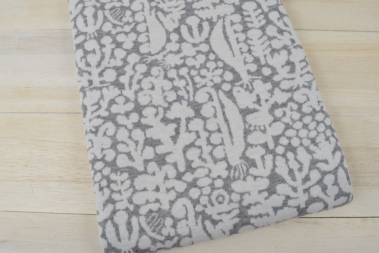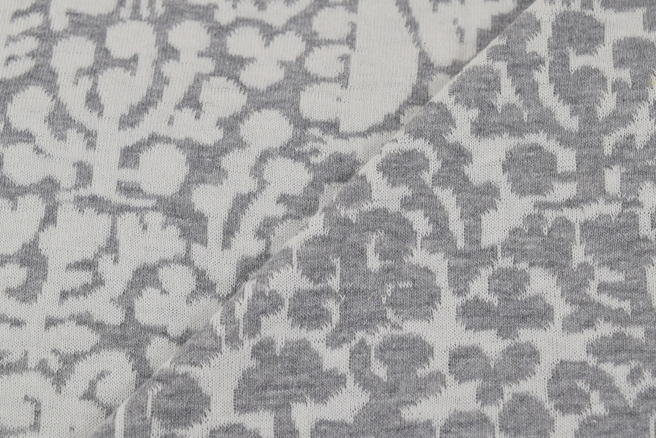 リバーシブルジャガードニット生地 フルールコロン柄                 色:杢グレー/アイボリー