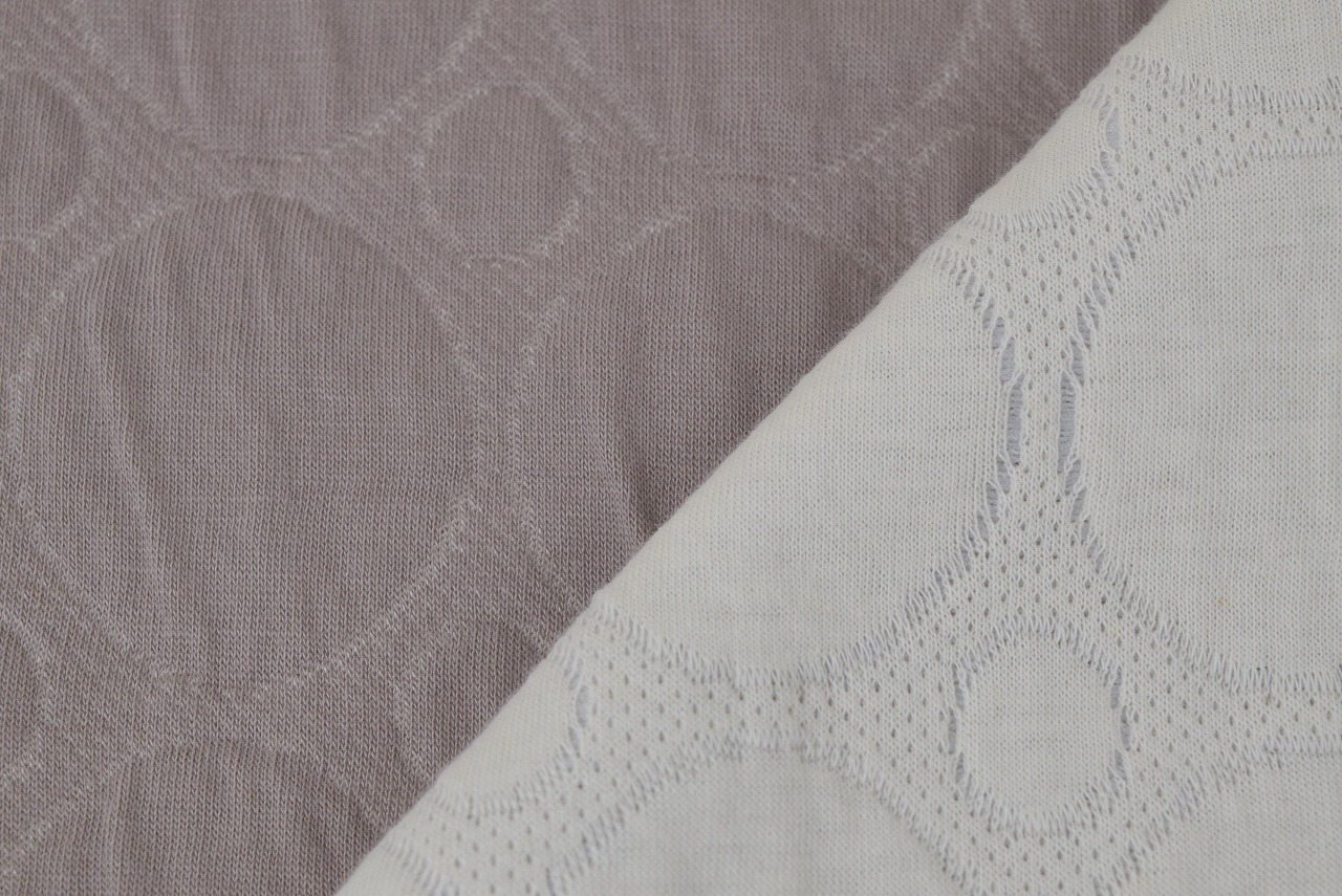 リバーシブルジャガードキルトニット生地 キルトピステ柄          色:トープ/アイボリー