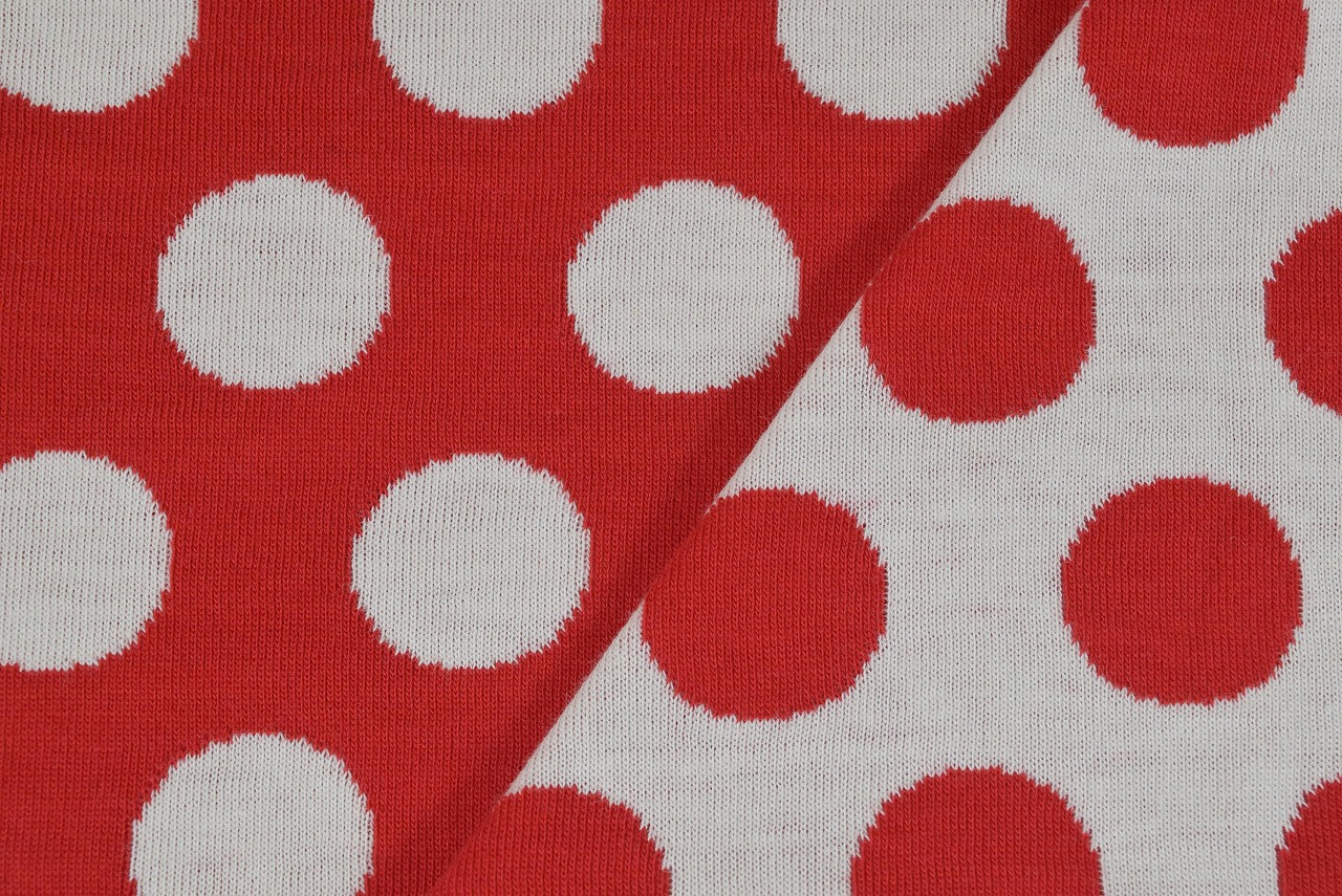 リバーシブルジャガードニット生地 しらたまドット柄        色:赤/アイボリー