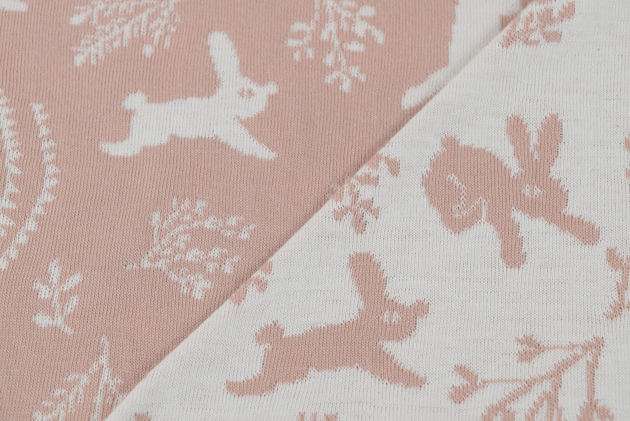 リバーシブルジャガードニット生地 ラビットラビット柄(1mカット生地)       色:ピンクベージュ/アイボリー