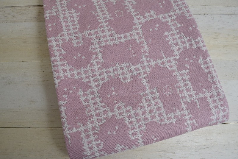 背景のぼんやりとした格子がかわいらしい生地を上品な仕上がりにしてくれます。