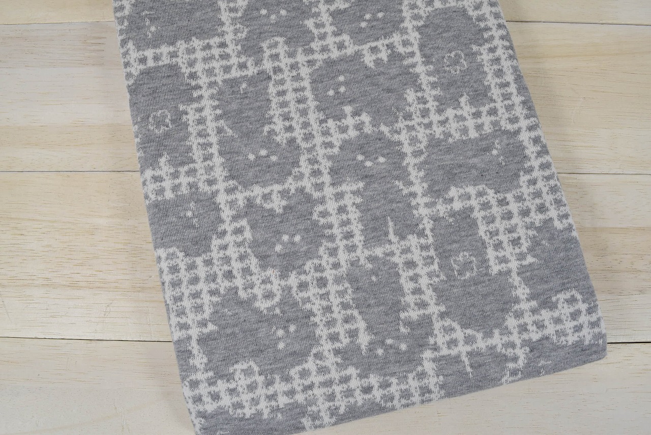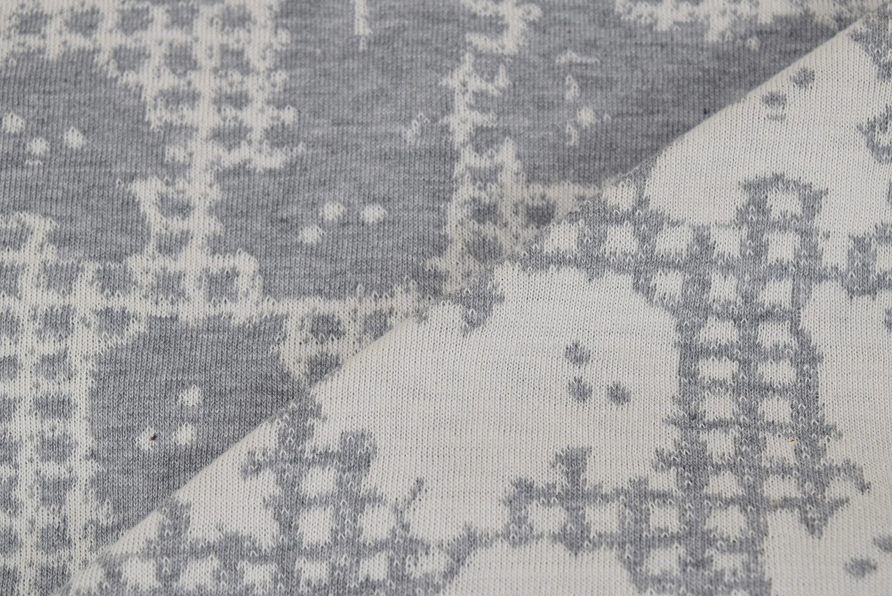 リバーシブルジャガードニット生地 ふわもこプードル柄              色:杢グレー/アイボリー