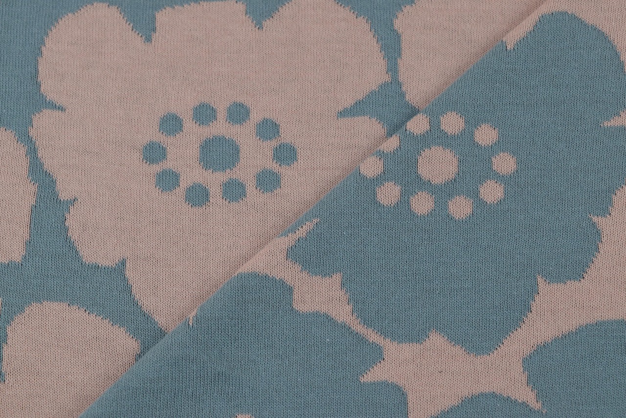リバーシブルジャガードニット生地 アネモネ柄                  色:アロエ/ピンクベージュ