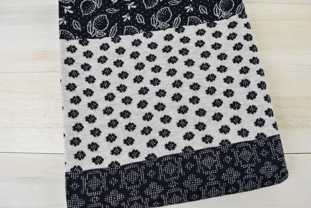リバーシブルジャガードニット生地 サラサ柄 150cm幅 1パネル(130cm)              色:黒/杢ベージュ