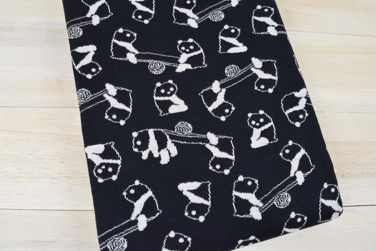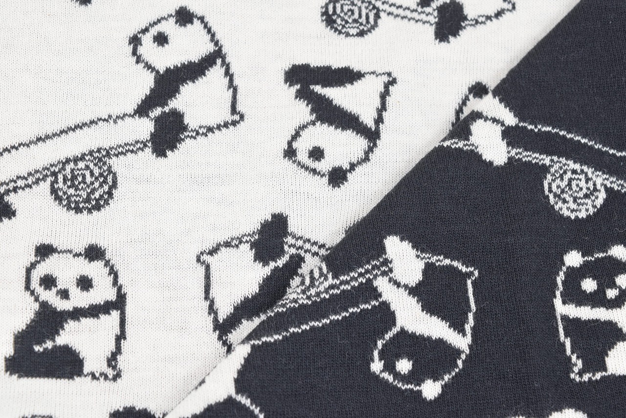 リバーシブルジャガードニット生地 パンダパーク柄            色:黒/アイボリー