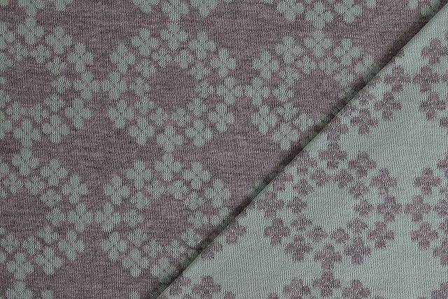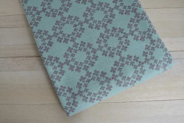 リバーシブルジャガードニット生地 フラワーリング柄         色:杢グレー/ミント