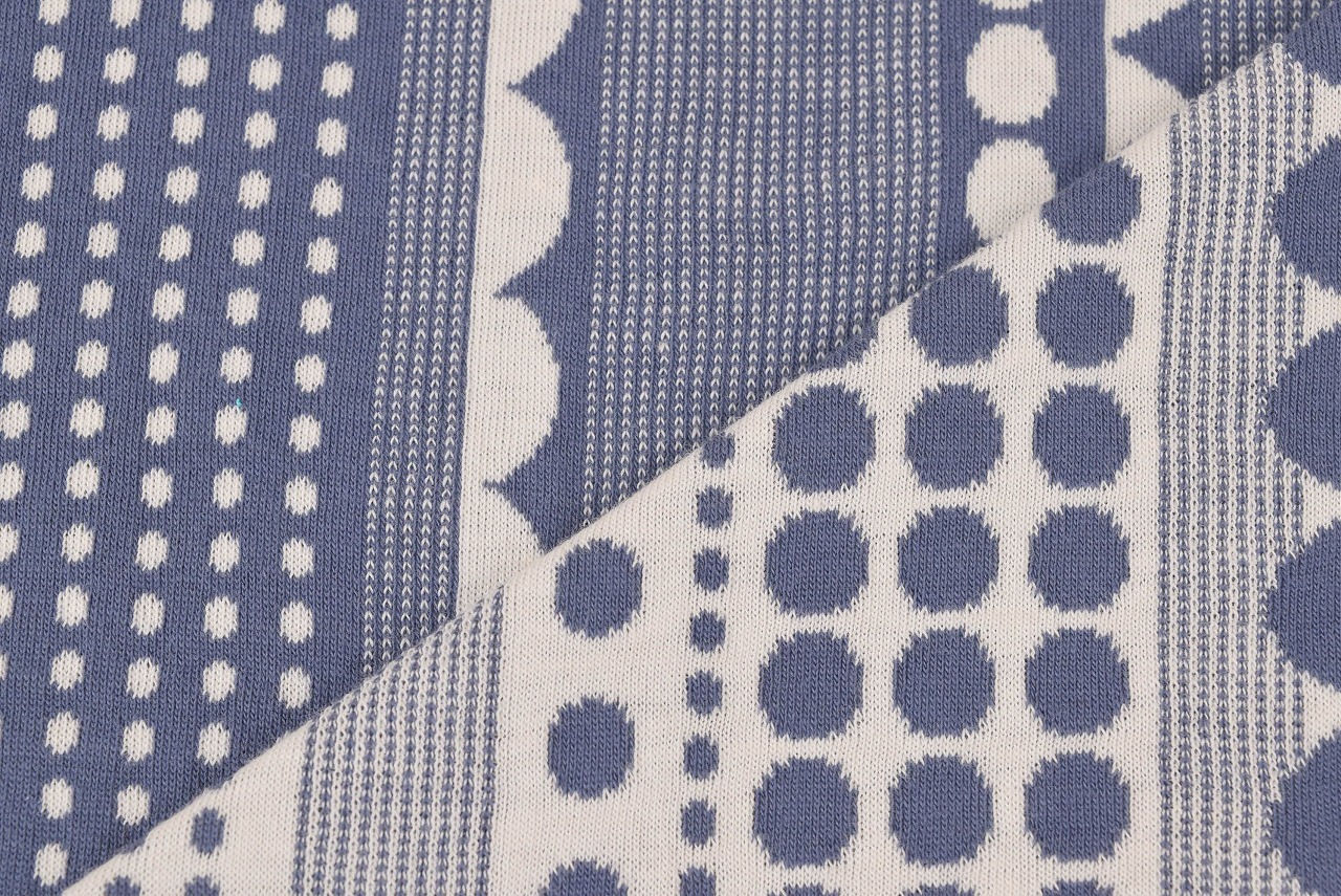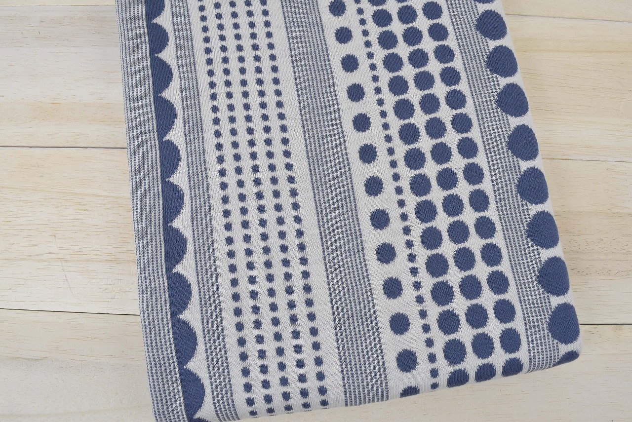 リバーシブルジャガードニット生地 ドットストライプ柄            色:ブルーグレー/アイボリー