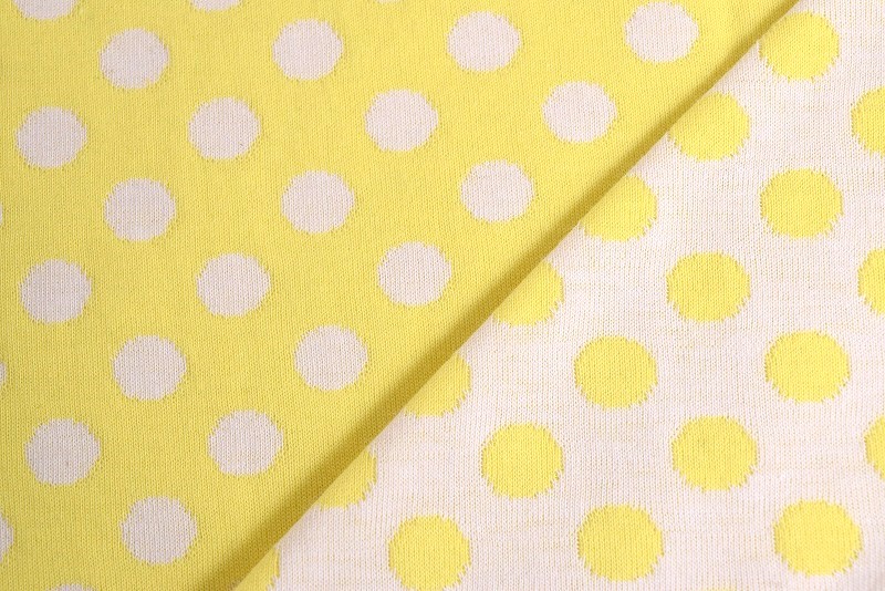 リバーシブルジャガードニット生地 ベーシックドット柄        色:レモン/アイボリー