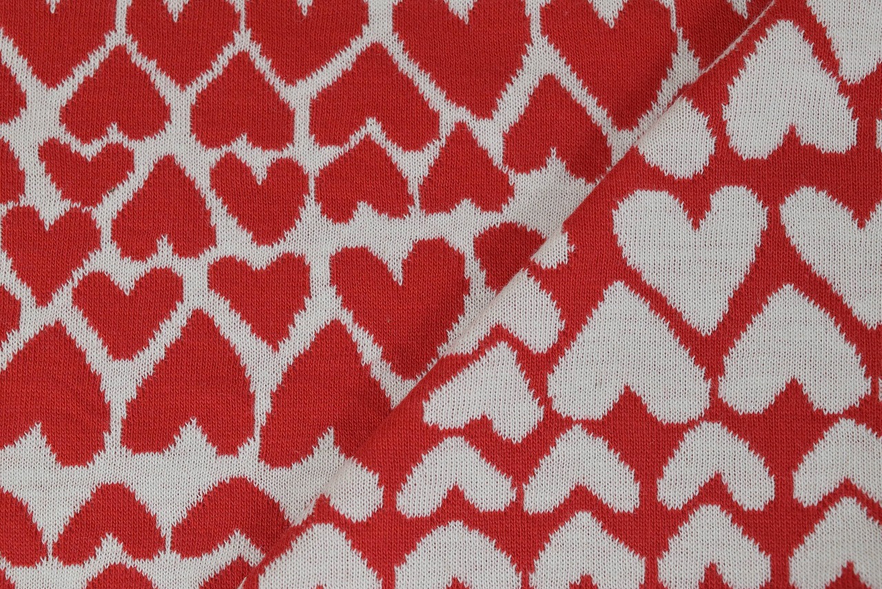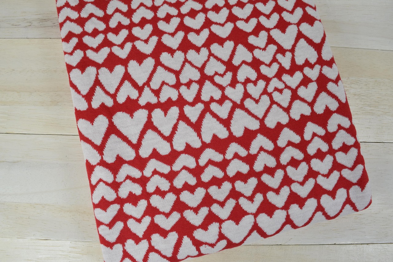 リバーシブルジャガードニット生地 ハートニット柄              色:レッド/アイボリー