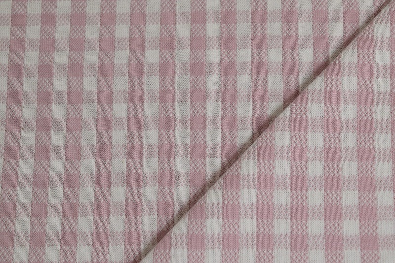 リバーシブルジャガードニット生地 ギンガムチェック柄            色:フレンチローズ/アイボリー