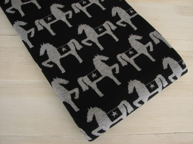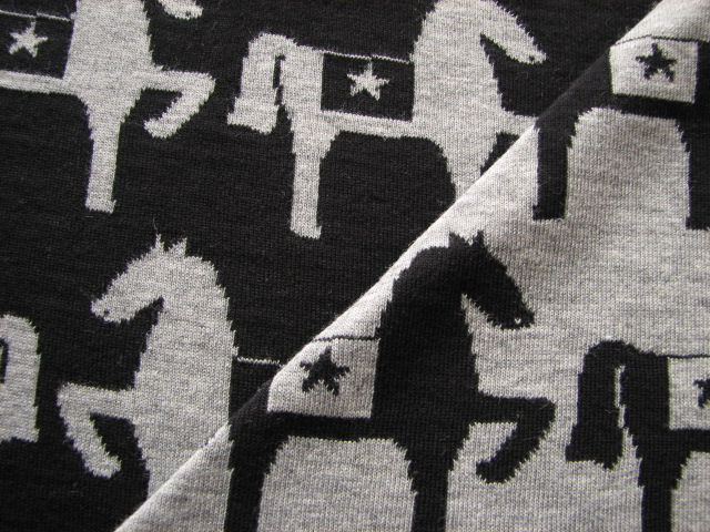 リバーシブルジャガードニット生地 馬柄                色:黒/杢グレー