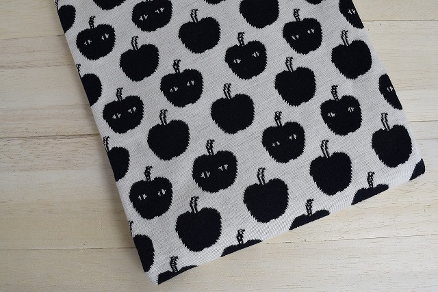 リバーシブルジャガードニット生地 アップルアタック柄         色:黒/アイボリー