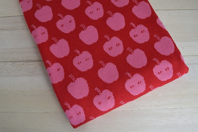 リバーシブルジャガードニット生地 アップルアタック柄            色:レッド/STピンク