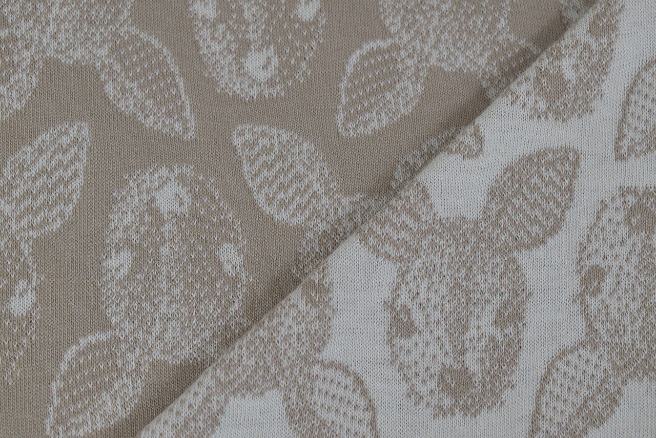 リバーシブルジャガードニット生地 バンビドール柄         色:カシミヤ/アイボリー