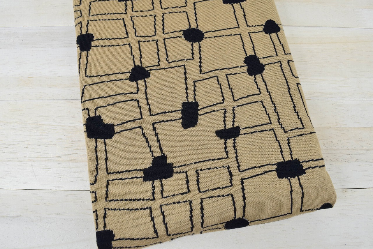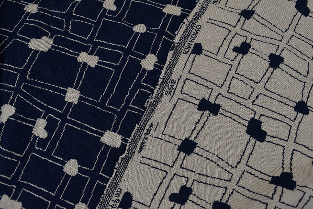 リバーシブルジャガードニット生地 〈KIM HONO×maffon〉路地柄         色:黒/くるみ