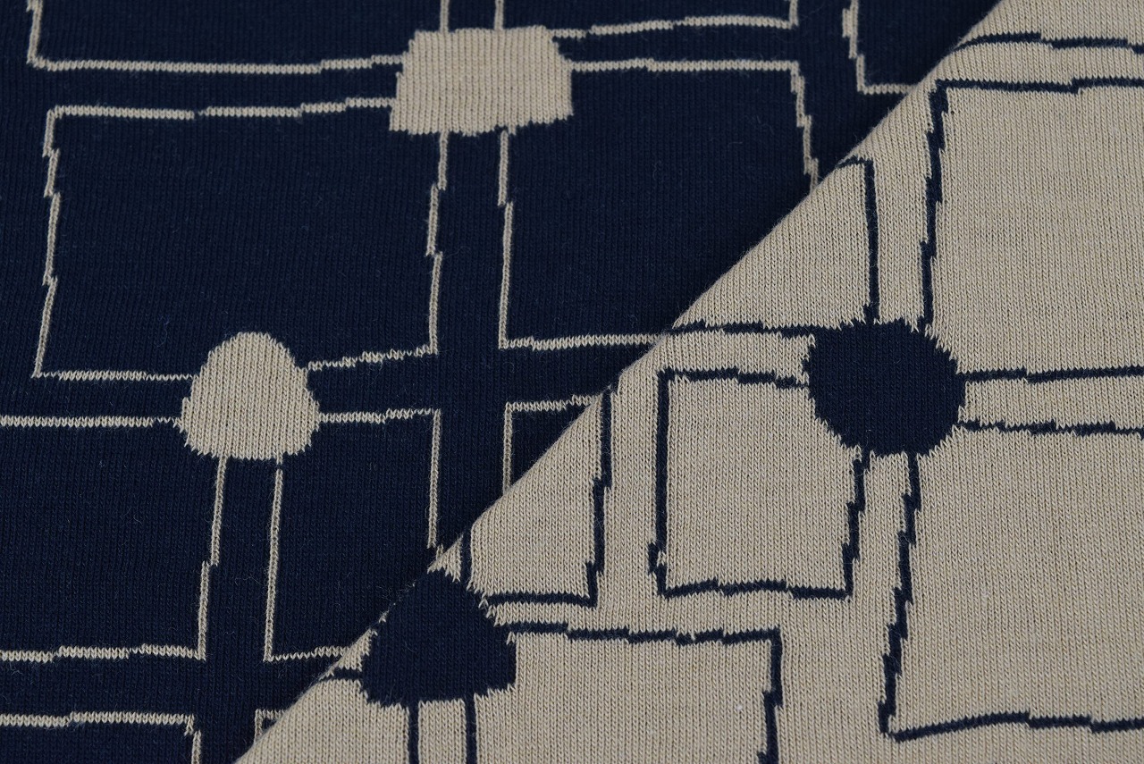 リバーシブルジャガードの接結ニット生地です。