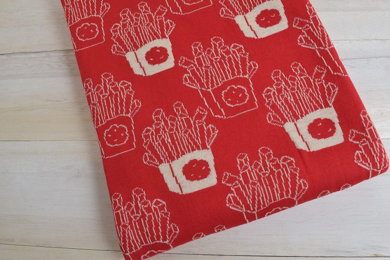 リバーシブルジャガードニット生地 ポテト柄             色:赤/コムギ